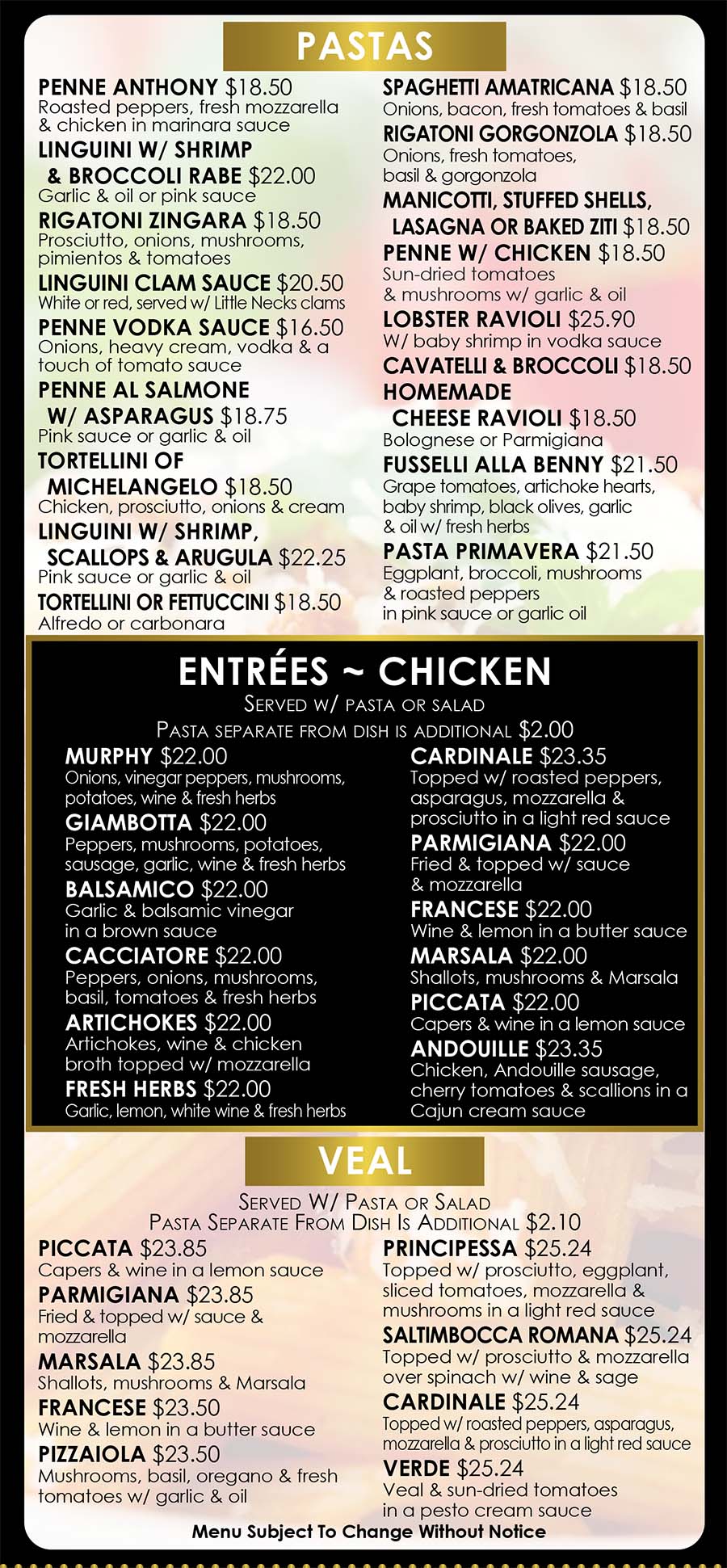 Pasta Menu